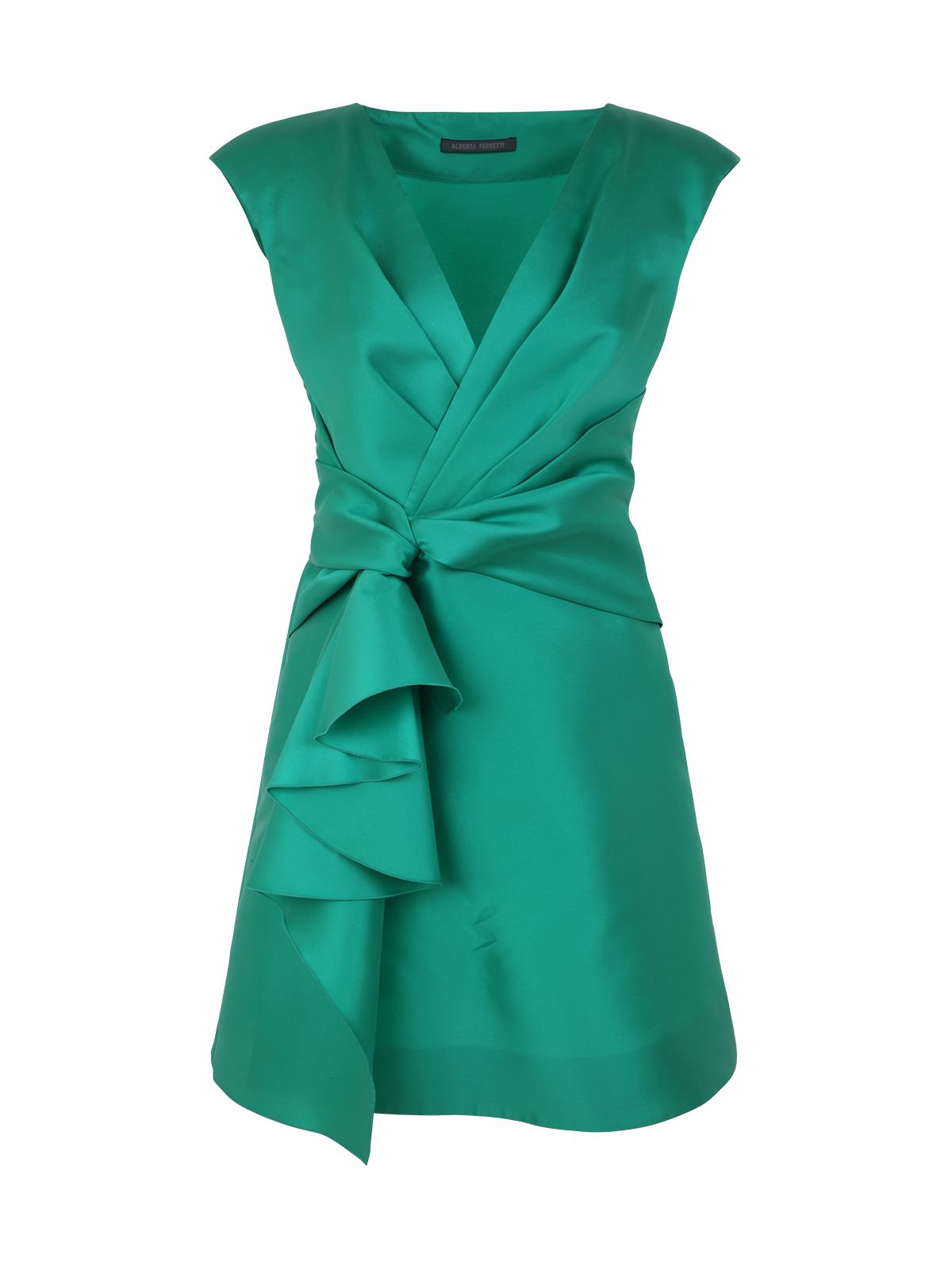 Questo abito corto mini mikado firmato Alberta Ferretti è realizzato in taffetà con drappeggio.