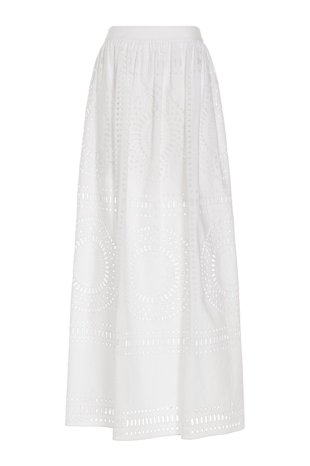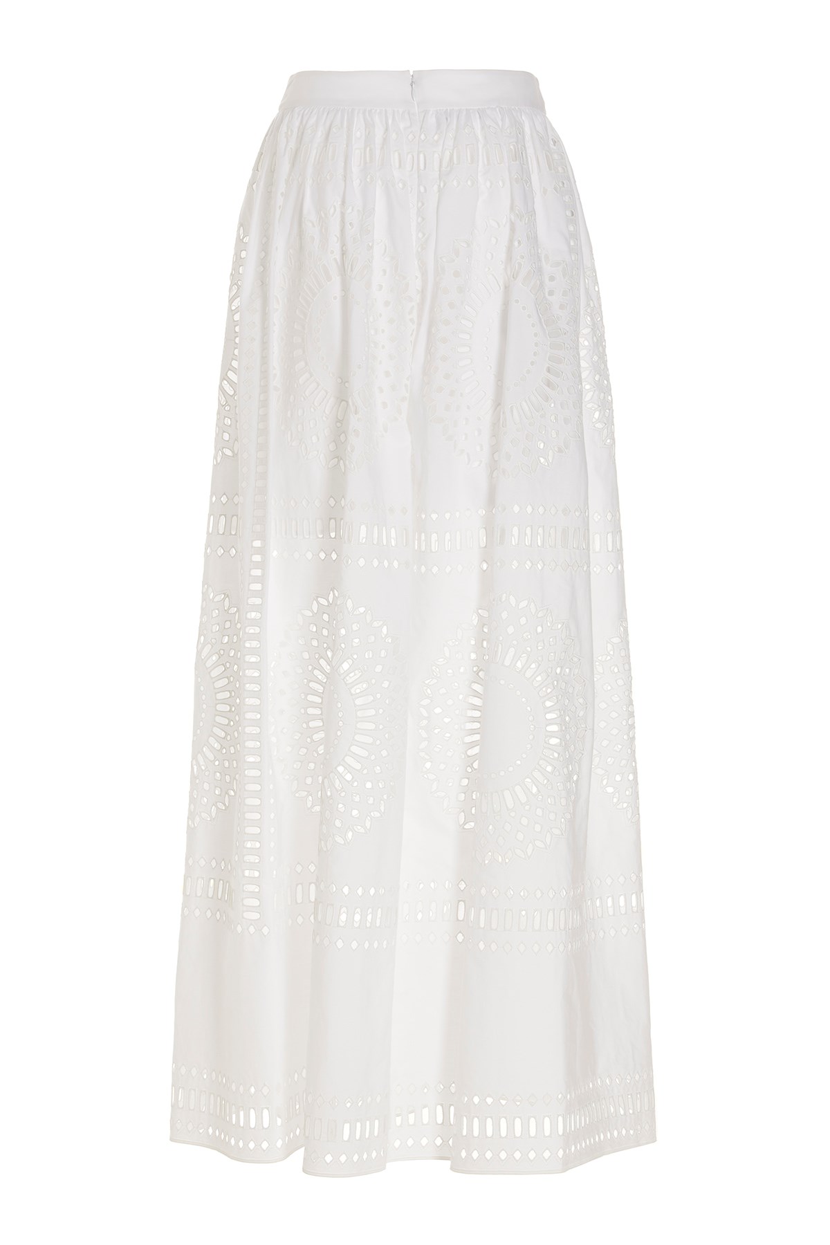 Gonna lunga traforata in misto cotone, chiusura zip posteriore.
