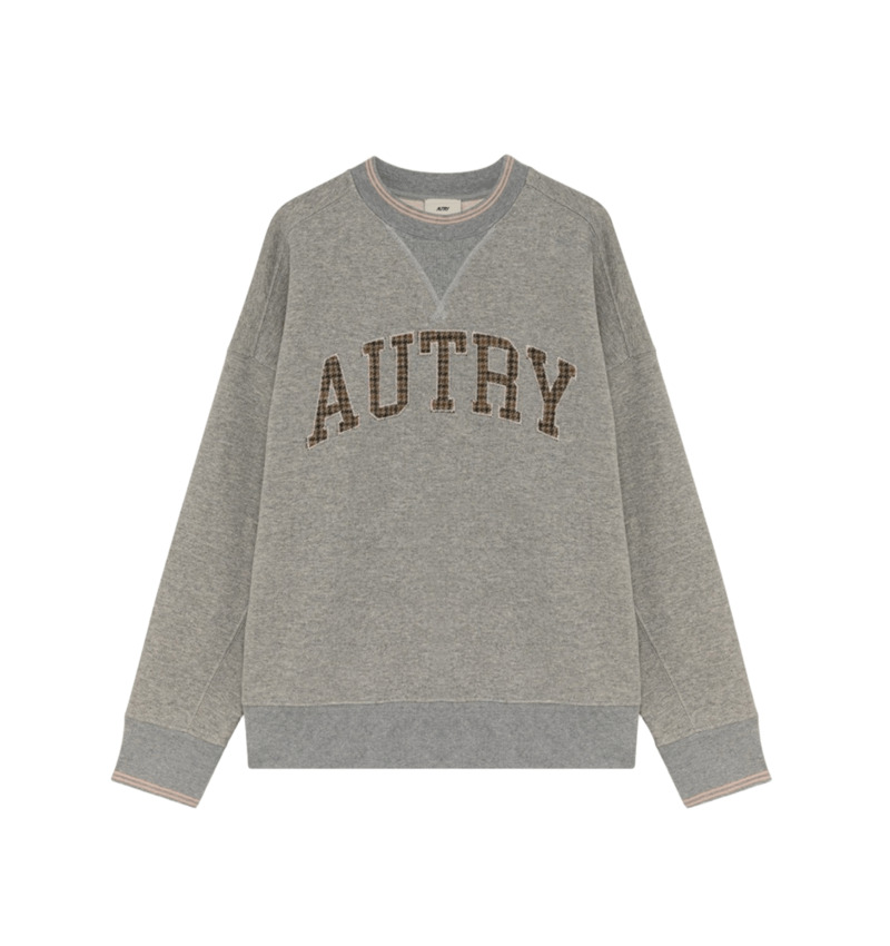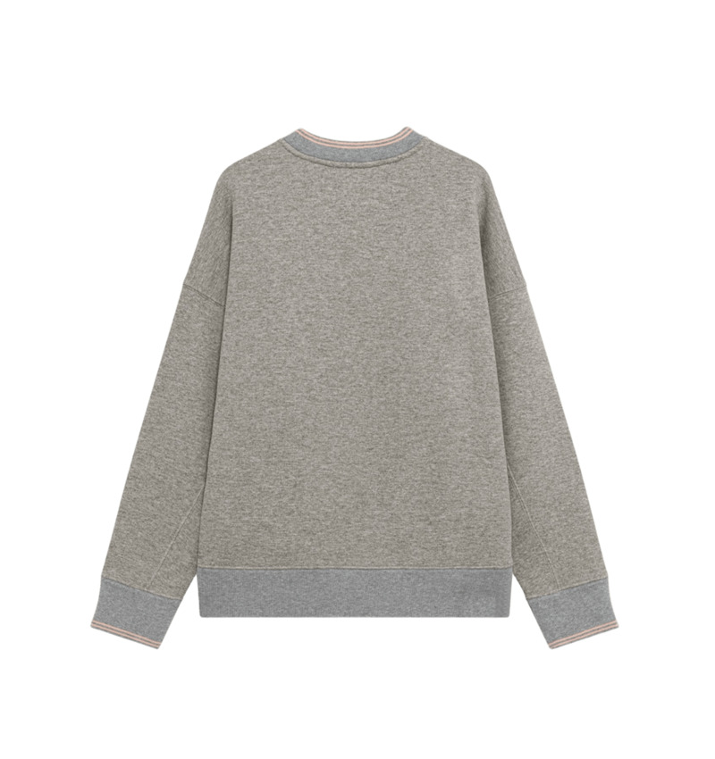 Felpa realizzata in puro cotone, girocollo con costine a righe sul collo e sui polsini e nastro applicato sugli orli.