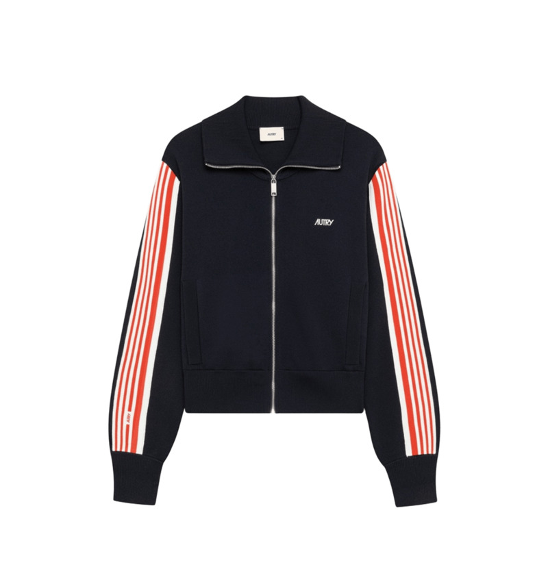Bande laterali a righe a contrasto sulle maniche, ricamo AUTRY sulla parte sinistra.