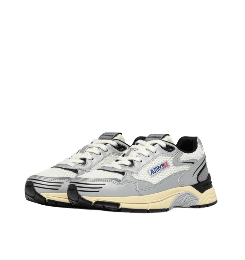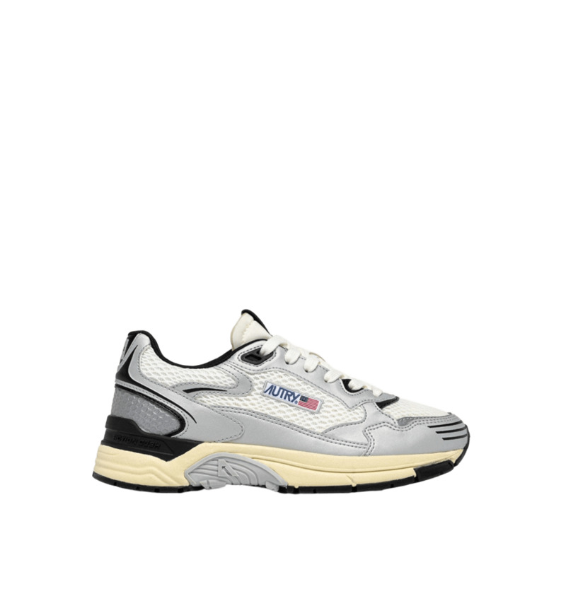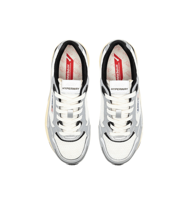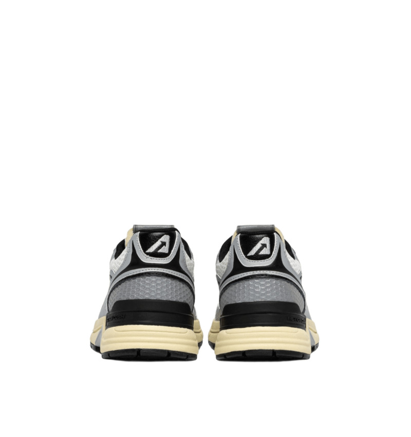 La tomaia si distingue per l'uso combinato del mesh, leggero e traspirante, che assicura comfort, mentre gli inserti in argento introducono un dettaglio di stile moderno. Questo modello è rifinito da particolari di colore nero che aggiungono un contrasto di colore.