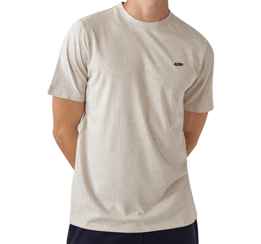 T- shirt da uomo, girocollo con colletto a costine e cucitura a doppio ago