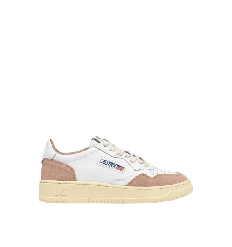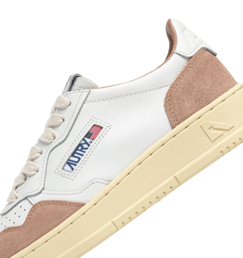 Il dettaglio in pelle che decora il tallone, la linguetta e il dettaglio laterale jacquard sono personalizzati con il logo Autry per un ulteriore tocco di autenticità.