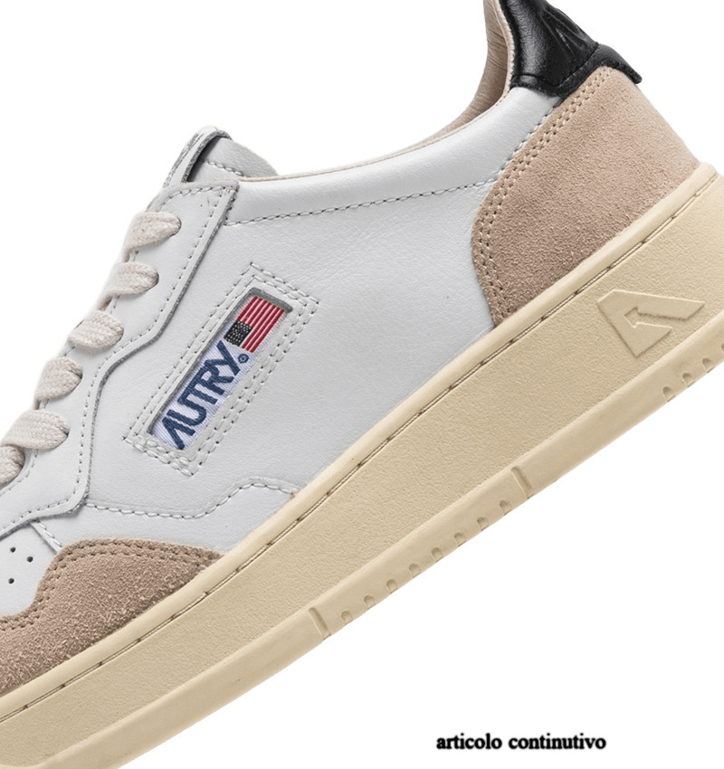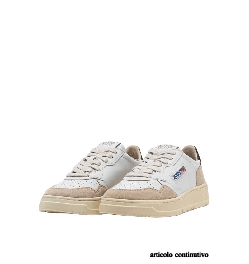 Questa scarpa da ginnastica da uomo è realizzata in morbida pelle bianca dall'aspetto autentico ed è rifinita con rinforzi in suede beige per un mix tattile e grafico deciso. Il dettaglio in pelle nera che decora il tallone è personalizzato con il logo Autry.