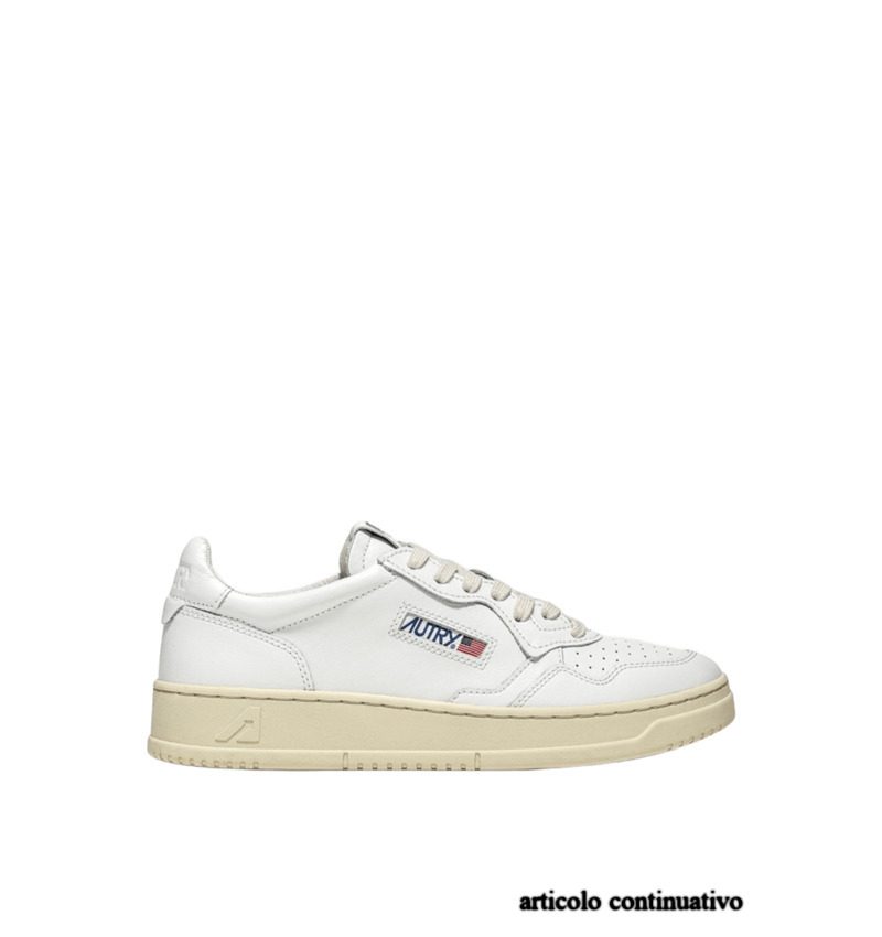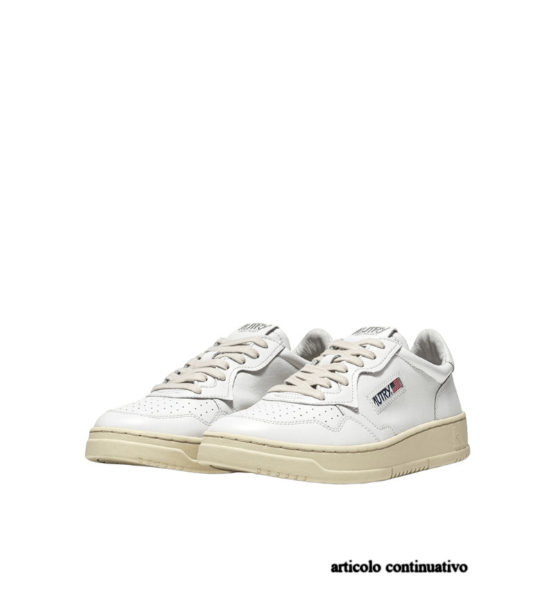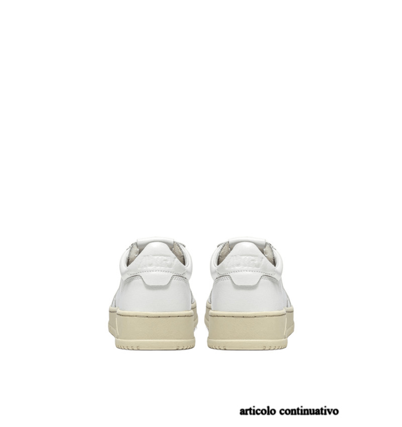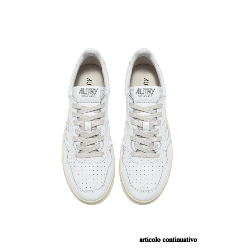 Questa scarpa da ginnastica da donna è realizzata in pelle bianca, morbida e dall'aspetto naturale, rifinita con la lavorazione a microfori sulla punta che offre un'ottima traspirabilità. Il dettaglio sul tallone in pelle bianca è personalizzato con il logo Autry.