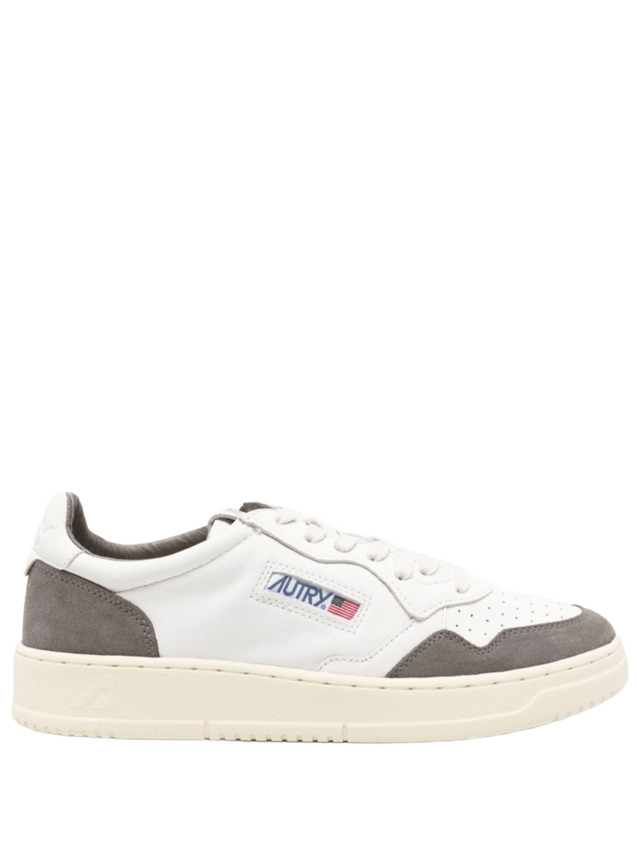 Questa versione di Medalist low è realizzata in pelle di capra bianca e ha inserti in suede colorato con talloncino bianco a definire la tomaia.