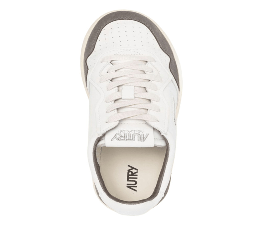 sneaker da uomo in pelle di capra di colore bianco e suede grigio