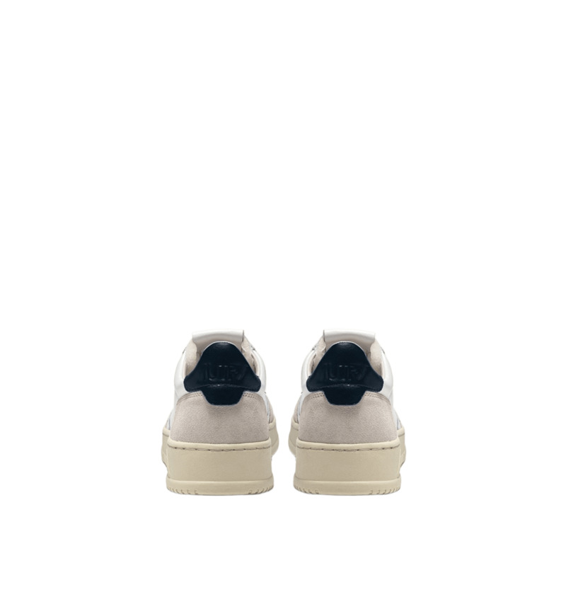 Questa scarpa da ginnastica da uomo è realizzata in morbida pelle bianca dall'aspetto autentico ed è rifinita con rinforzi in suede beige per un mix tattile e grafico deciso. Il dettaglio in pelle marrone che decora il tallone è personalizzato con il logo Autry.