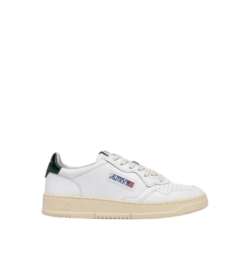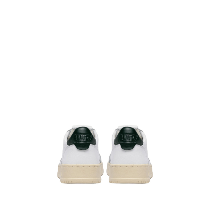 Questa scarpa da ginnastica da uomo è realizzata in pelle bianca, morbida e dall'aspetto naturale, rifinita con la lavorazione a microfori sulla punta che offre un'ottima traspirabilità. Il dettaglio sul tallone in pelle verde bottiglia aggiunge un tocco di colore al look.