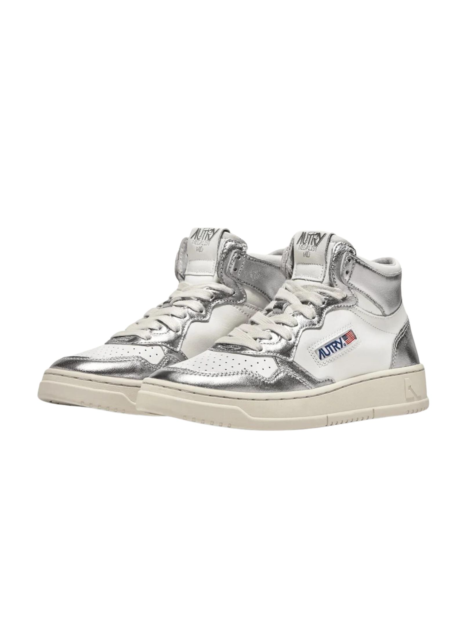 Uno stile senza tempo: Autry Medalist è la scarpa ispirata ai modelli vintage degli anni Ottanta, reinterpretata in chiave contemporanea. Un design inconfondibile reso unico dalla tomaia in pelle bicolor bianco e silver e dall'iconico logo impresso sul talloncino posteriore di colore silver.