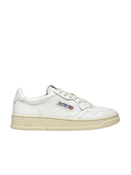 Questa scarpa da ginnastica da donna è realizzata in pelle bianca, morbida e dall'aspetto naturale, rifinita con la lavorazione a microfori sulla punta che offre un'ottima traspirabilità. Il dettaglio sul tallone in pelle bianca è personalizzato con il logo Autry.