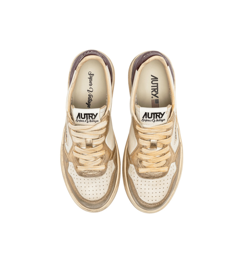 La sneakers Medalist Super Vintage è l'espressione più autentica di Autry. Il design d'ispirazione tennis è comodo e accogliente grazie ai materiali di alta qualità, mentre il richiamo agli anni '80 è esaltato dai trattamenti artigianali che creano un aspetto used irregolare e unico per ogni modello.