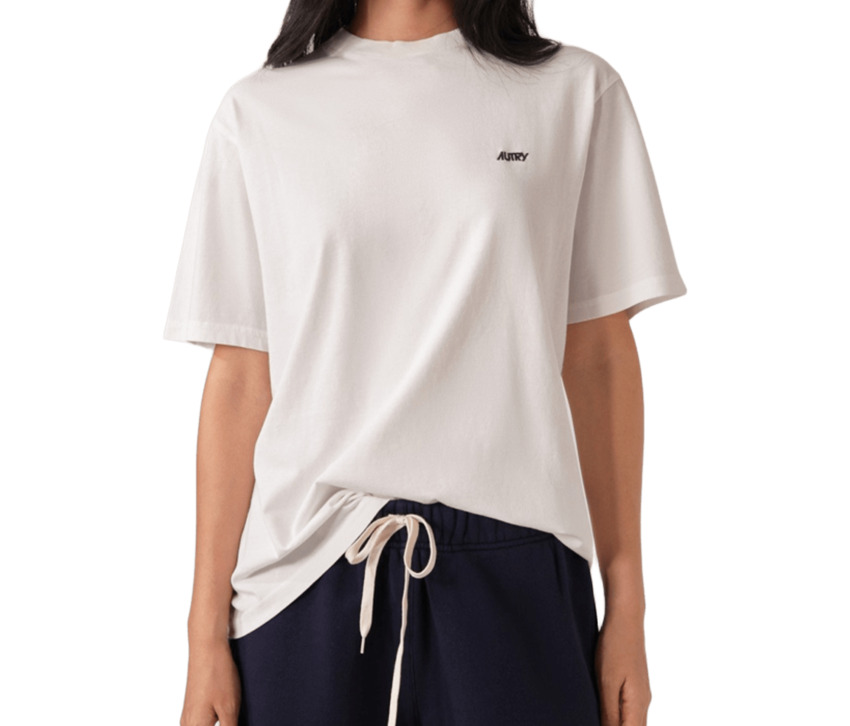 T- shirt da donna, girocollo con colletto a costine e cucitura a doppio ago