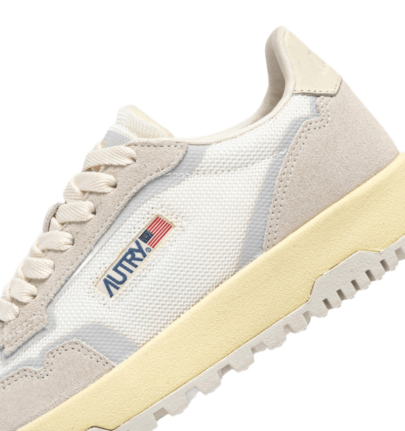 Questo modello è arricchito da dettagli in TPU spalmato, dal dettaglio laterale con logo Autry jacquard e dal talloncino in nabuk con logo impresso.