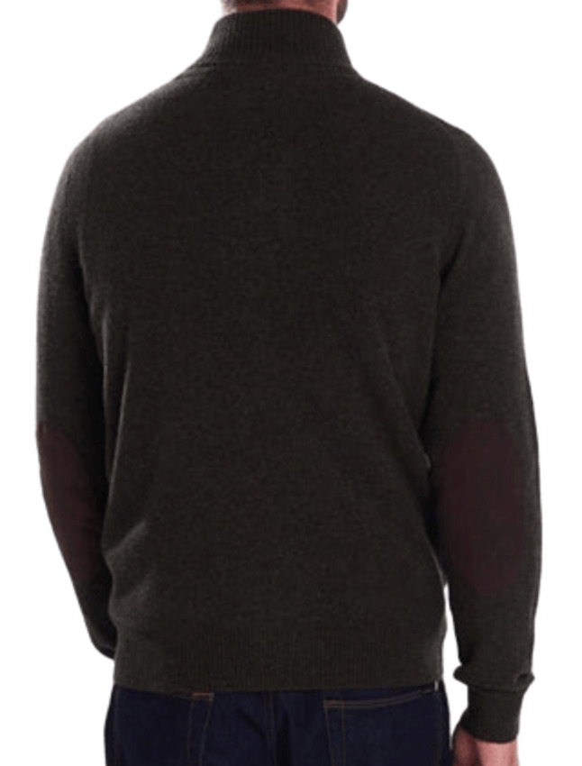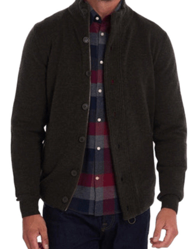 Cardigan da uomo in lana con chiusura con zip e bottoni e tasche sui gomiti col marrone scuro