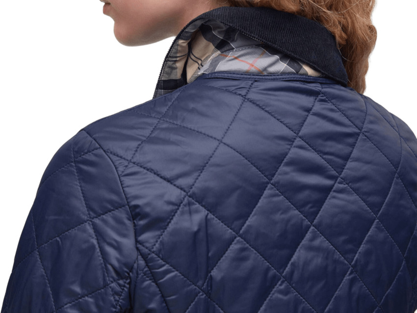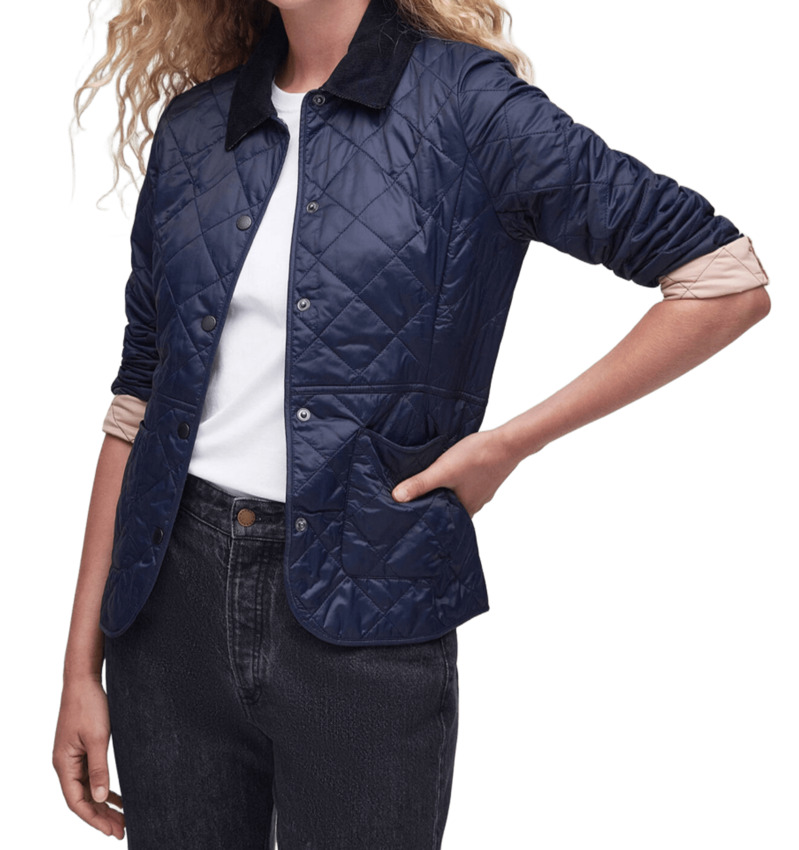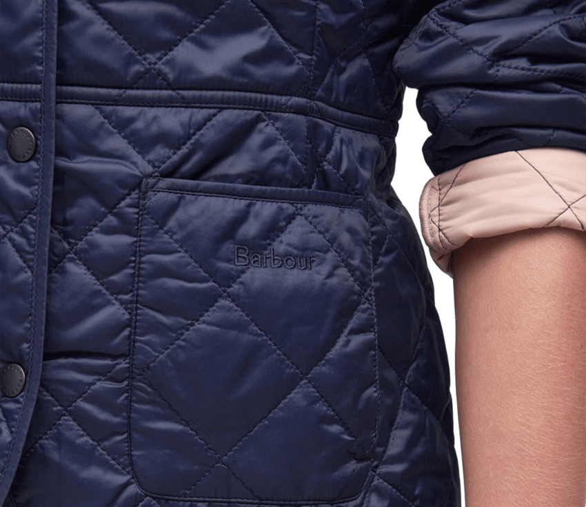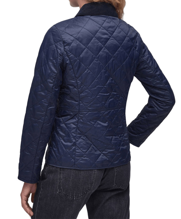 La giacca trapuntata Barbour Deveron presenta un colletto in velluto a costine e una fodera femminile a contrasto. È provvista di due pratiche tasche applicate sul davanti ed è finemente rifinita con il logo Barbour ricamato per un tocco di autenticità.