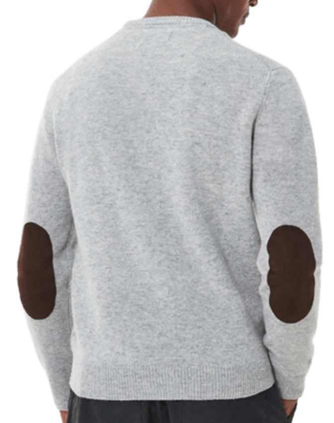 Questo maglione in pura lana è disegnato per essere indossato facilmente con un girocollo a coste e maniche lunghe con toppe sui gomiti in alcantara. Una targhetta Barbour in pelle rifinisce l'orlo di questo capo versatile.