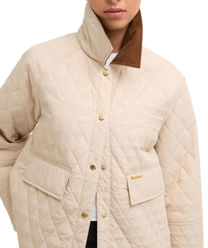 La giacca trapuntata Kirby Ispirata all'iconico modello Spey presenta una trapuntatura a contrasto sul corpo e sulle maniche, eleganti tasche con patta e un morbido colletto a coste sottili. Rifinito dallesclusiva fodera parziale superiore in tartan, questo capospalla dal look ricercato offre un calore impareggiabile insieme allinconfondibile qualità di Barbour.