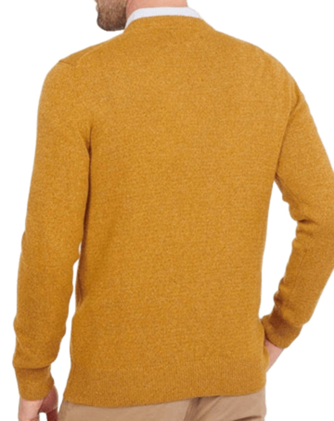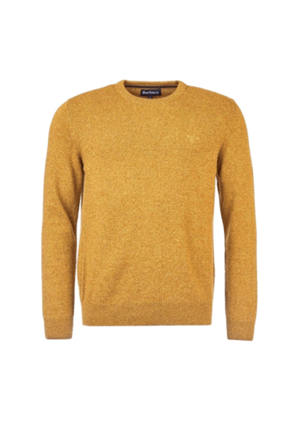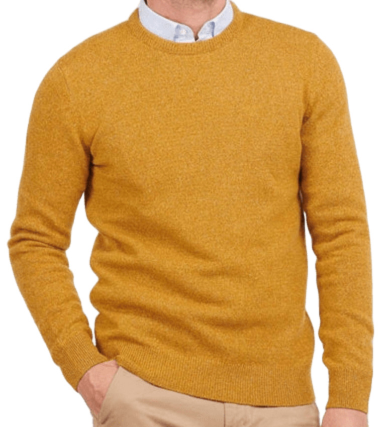 Maglia da uomo girocollo in misto lana ad effetto tweed color senape