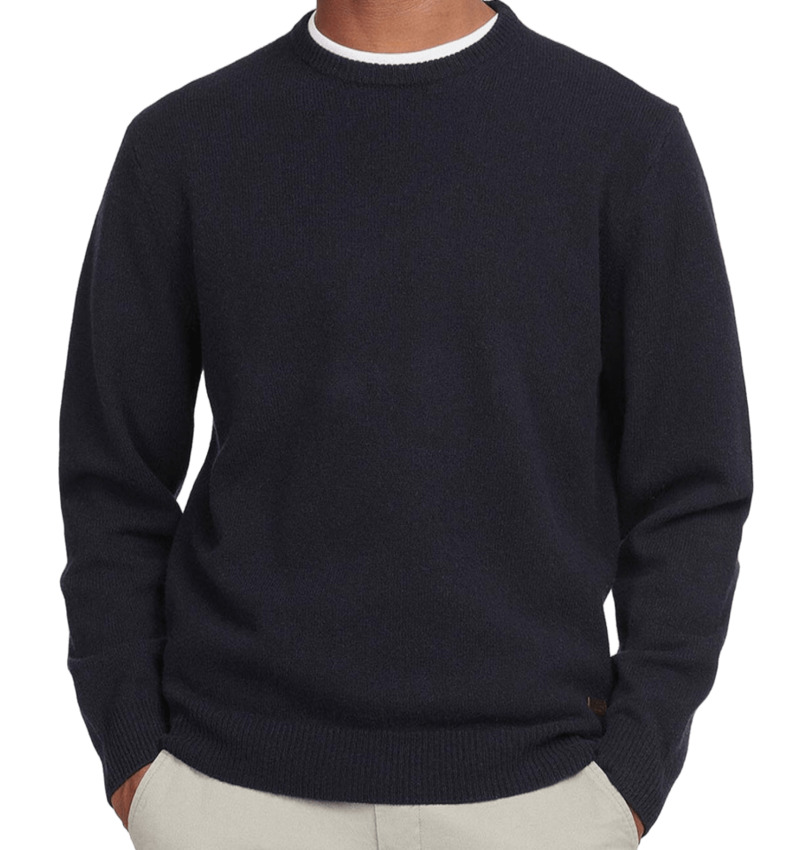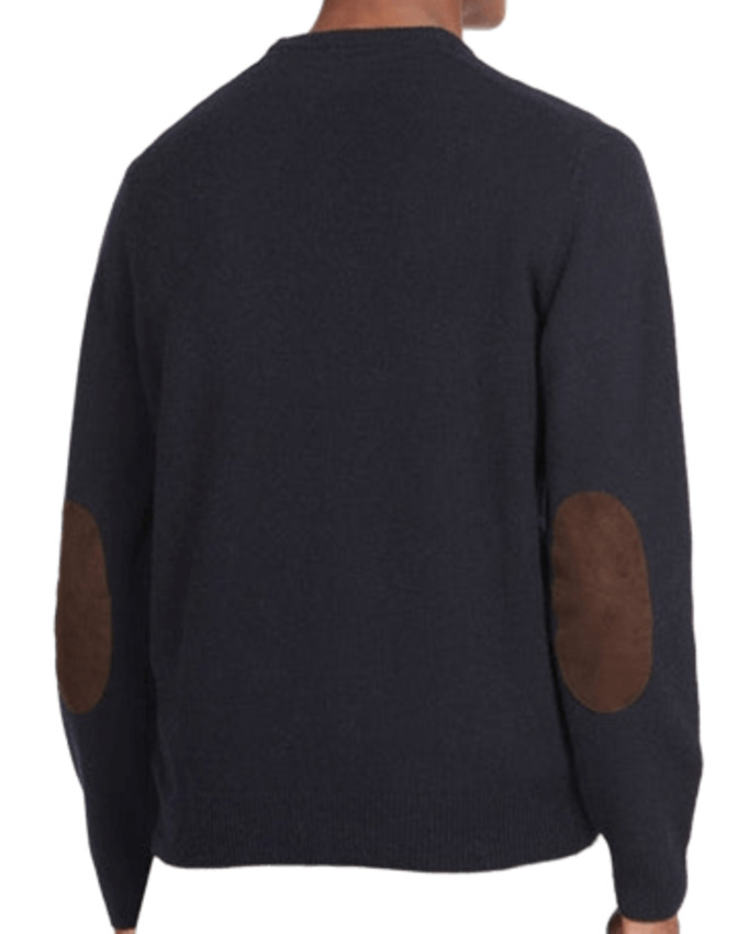 Questo maglione in pura lana è disegnato per essere indossato facilmente con un girocollo a coste e maniche lunghe con toppe sui gomiti in alcantara. Una targhetta Barbour in pelle rifinisce l'orlo di questo capo versatile.
