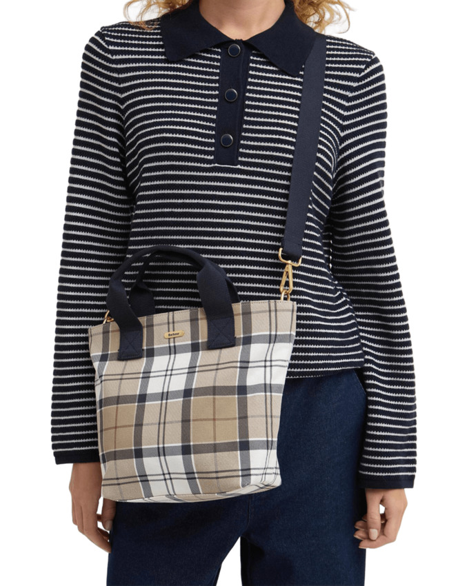 La borsa tote Maisy in tartan firmata Barbour è la compagna ideale per le giornate in spiaggia. Questo accessorio minimal in tartan di tela offre spazio in abbondanza per gli oggetti di uso quotidiano, mentre la tracolla rimovibile aggiunge un vero tocco di stile.Targhetta in metallo dalla tonalità oro opaco allesterno, sul davanti.