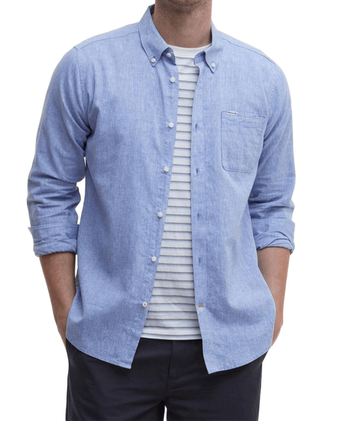 La camicia sartoriale Barbour Nelson è realizzata in misto lino e cotone per un mix perfetto di comfort e stile. Il capo è rifinito da un taschino sul petto a sinistra e un'etichetta Barbour con lo scudo.