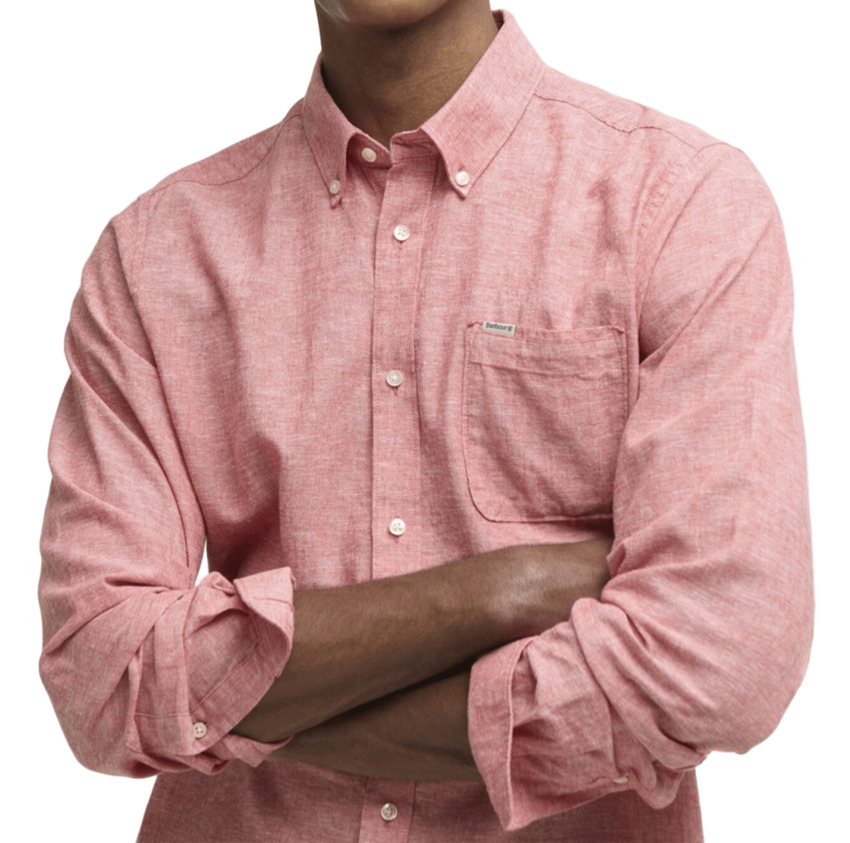 Camicia da uomo in misto lino e cotone , maniche lunghe, taschino, colore classic blu.