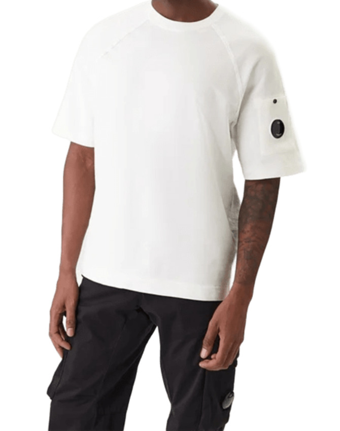 Felpa a maniche corte realizzata in felpa di cotone leggero, un tessuto morbido e traspirante che garantisce comfort quotidiano. Il modello presenta un girocollo a costine, maniche raglan e liconica Lente di C.P. Company sulla manica. Tinta in capo.