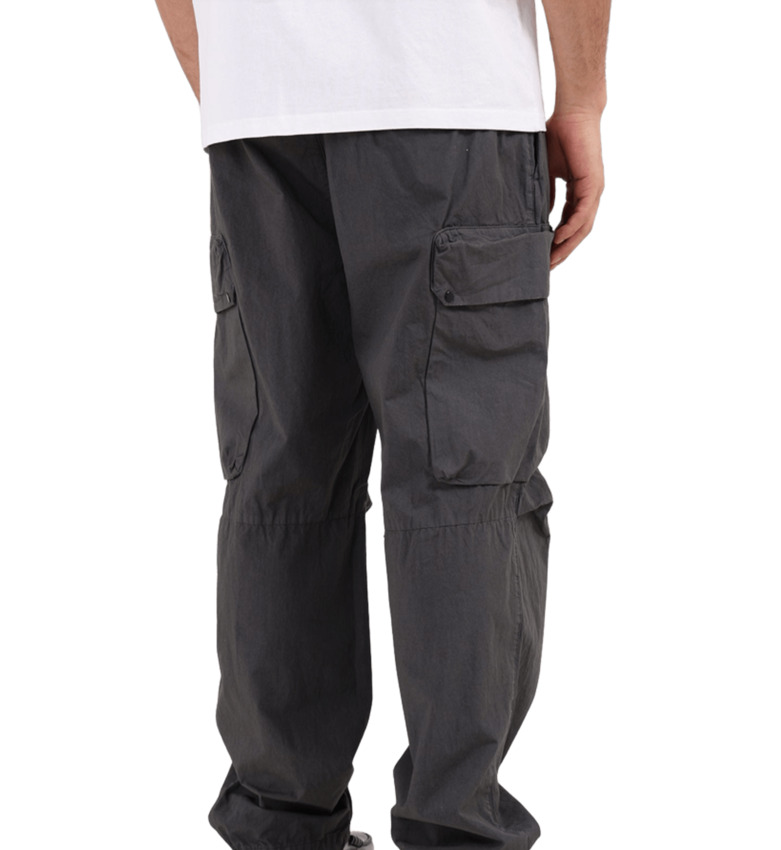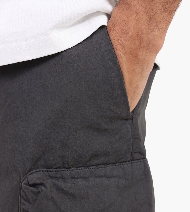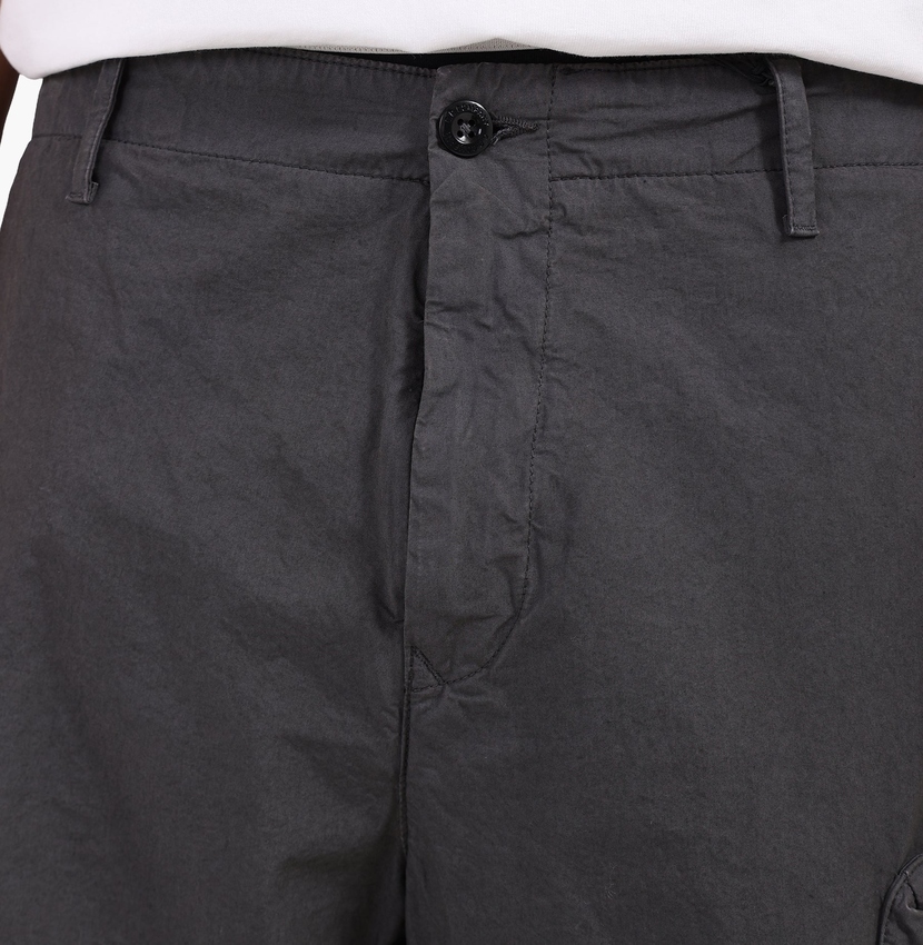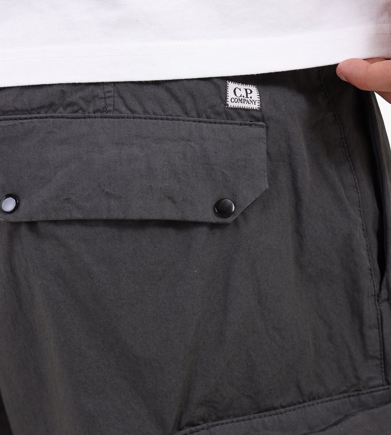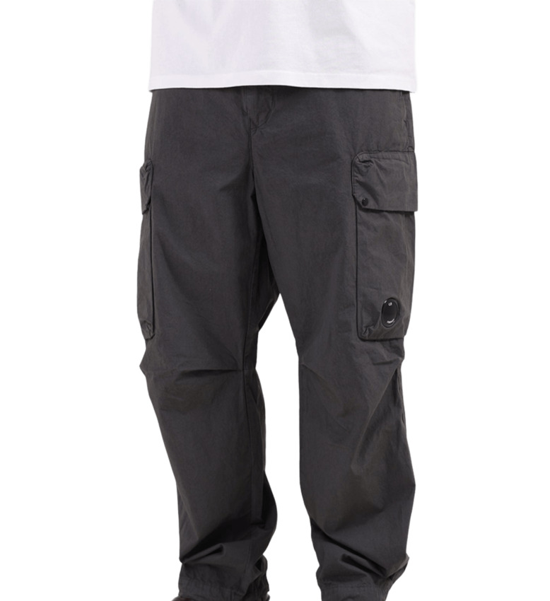 Pantaloni cargo realizzati in cotone ad alta densità caratterizzato da una struttura compatta e una mano morbida. Il modello presenta chiusura con bottone e zip, passanti per cintura e tasche laterali con patta e bottoni automatici con liconica Lente di C.P. Company, una tasca posteriore con patta e unetichetta con logo applicata sul retro. Lorlo regolabile con coulisse completa il design. Chiusura con bottoni e zip