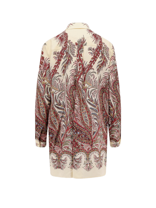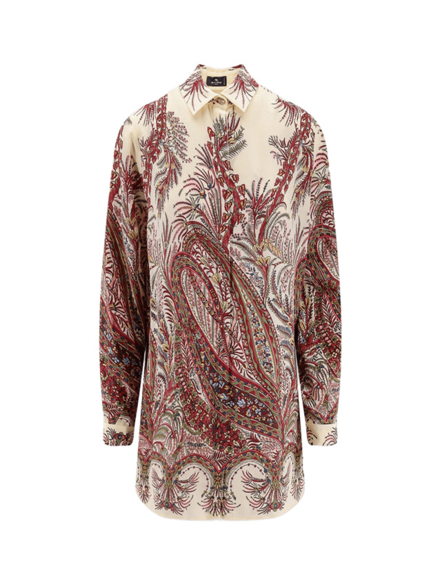 Camicia dal design lungo e dritto realizzata in pura seta crêpe de Chine con una stampa Paisley floreale piazzata. Caratterizzata da un colletto classico e maniche lunghe con polsini con bottone.