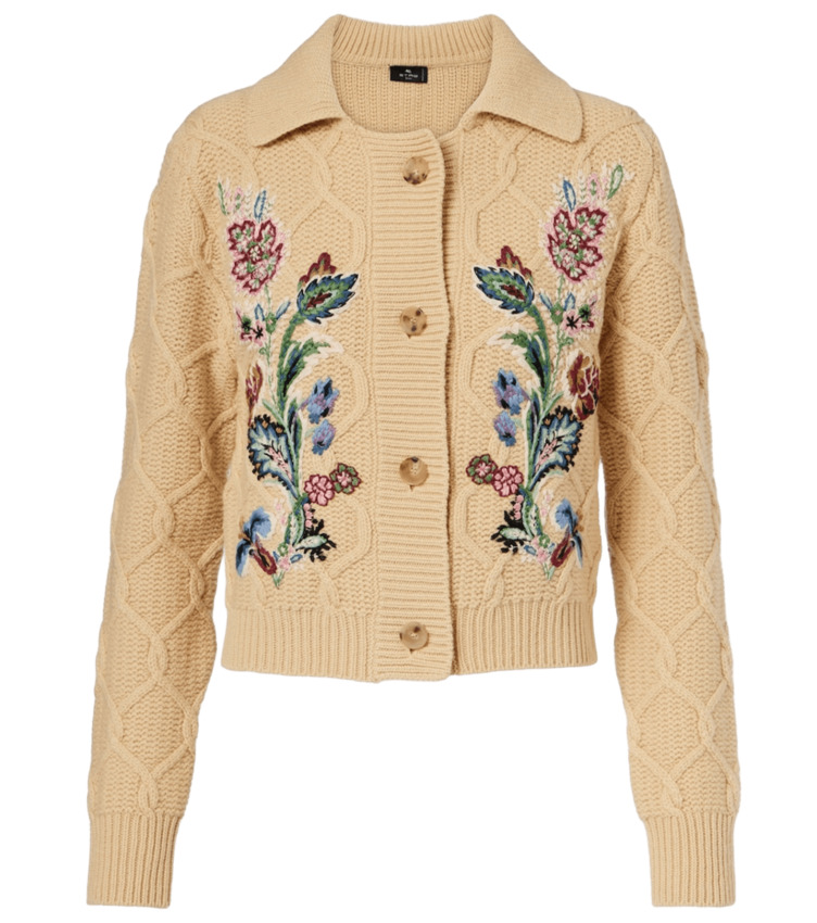 L'amore di Gerolamo e Roberta Etro per le stampe e i motivi antichi rimane ancora oggi una pietra miliare del brand italiano. Lavorato a trecce in lana e cashmere, questo cardigan presenta un accattivante ricamo floreale.
