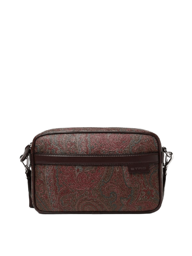 Borsa piccola a tracolla realizzata nell'iconico tessuto Paisley jacquard con dettagli in pelle e logo ETRO sul davanti. Presenta tracolla logata rimovibile in gros grain con motivo a righe. Fodera interna in tessuto a righe.