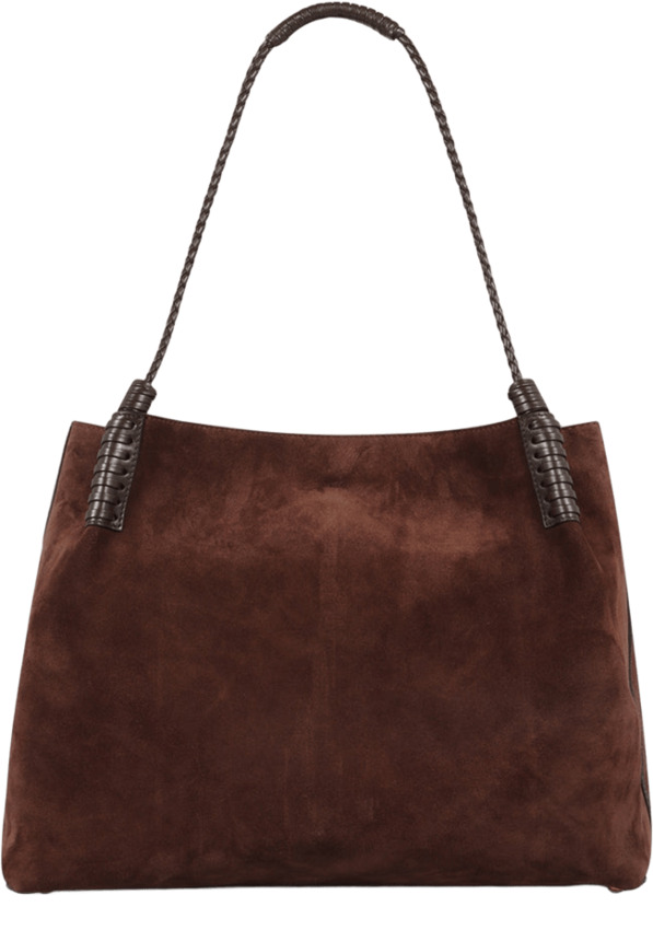 Borsa shopping Libra media è realizzata in suede tinta unita con logo Pegaso frontale impresso a caldo. Presenta un doppio manico intrecciato che consente una portabilità a spalla ed è completata da un interno sfoderato.