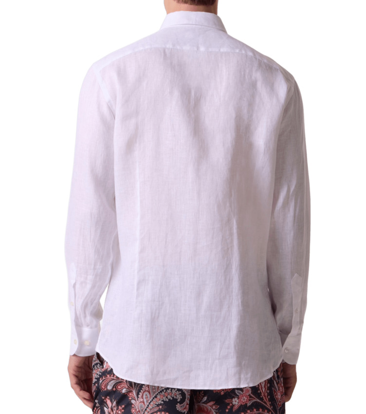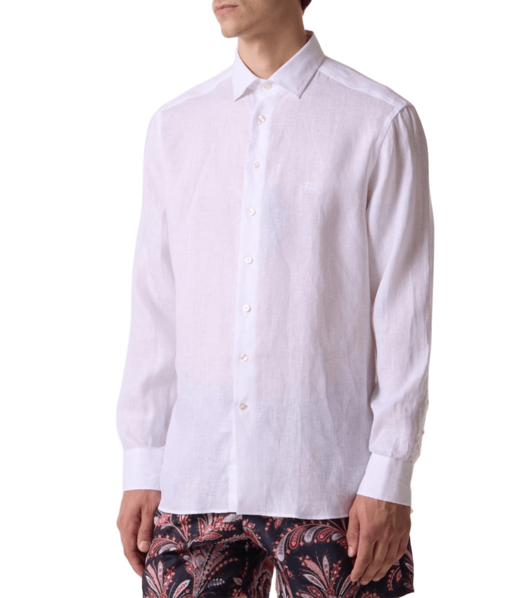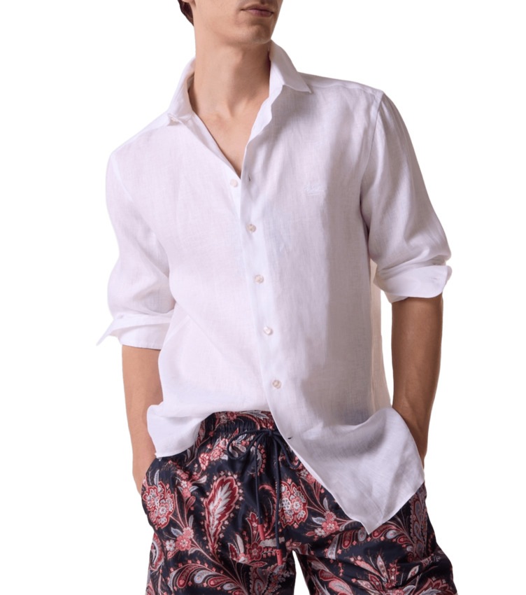 Camicia realizzata in puro lino fiammato tinta unita e rifinita con un piccolo ricamo Pegaso ton sur ton sul petto.