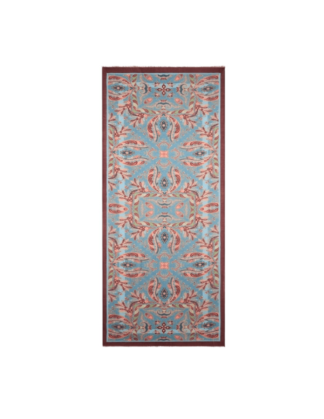 Sciarpa realizzata in lana misto cashmere con una stampa piazzata d'ispirazione floreale. Completano l'accessorio i lati corti leggermente sfrangiati e il logo ETRO sull'angolo.