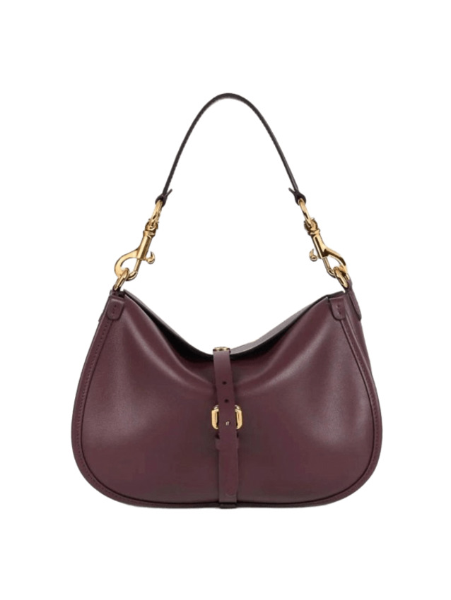 Borsa Pony dalle linee morbide è realizzata in pelle tinta unita con interno in suede. Presenta una doppia chiusura: quella principale con bottone magnetico decorato dal logo ETRO e Pegaso e quella secondaria con fibbia metallica funzionale.