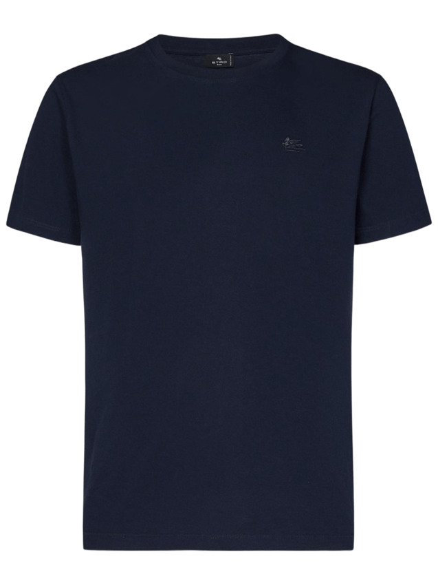 T-shirt da uomo girocollo, mezza manica in jersey di cotone con Pegaso tono su tono ricamato sul petto colore blu