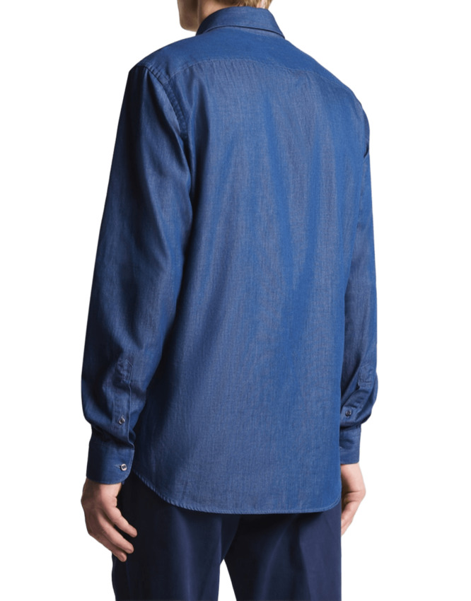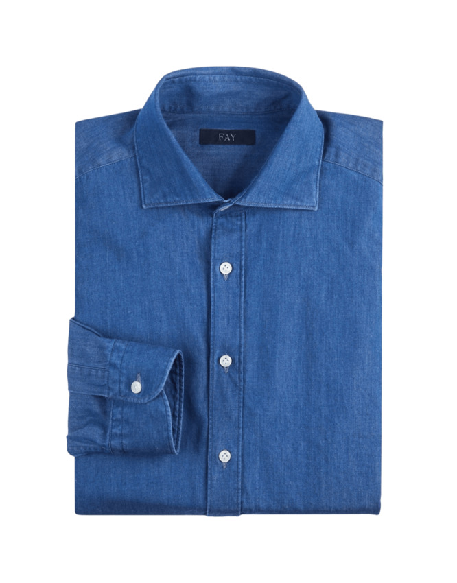 Camicia in denim con collo francese e un'abbottonatura con cannoncino. Un capo dallo stile casual intramontabile, arricchito dal logo Fay ricamato sul fondo.