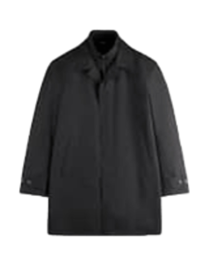 Con tasche a filetto e fondo manica con fascetta e bottone, presenta una chiusura con zip e bottoni nascosti che rimandano al mondo degli impermeabili british. Completa il capo un taschino interno.