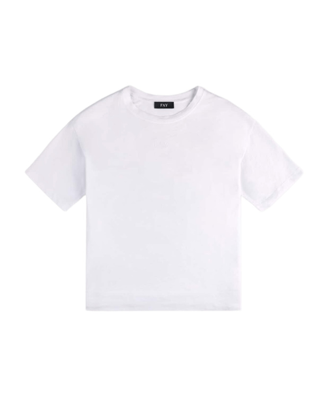 T-shirt girocollo a manica corta realizzata in jersey di cotone, con logo Fay ricamato al centro.