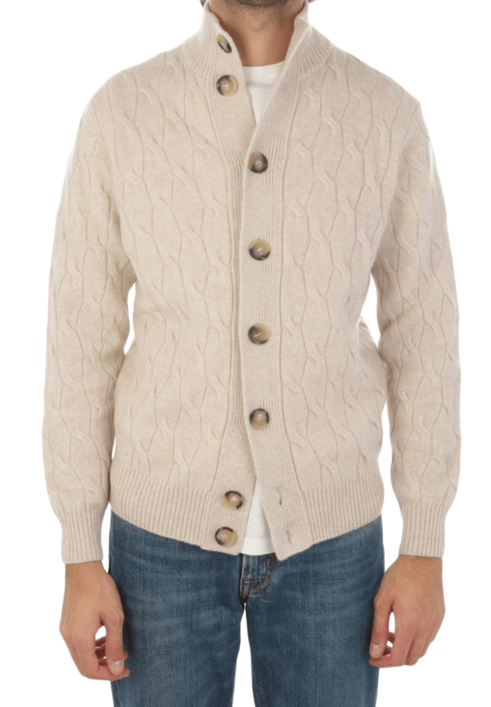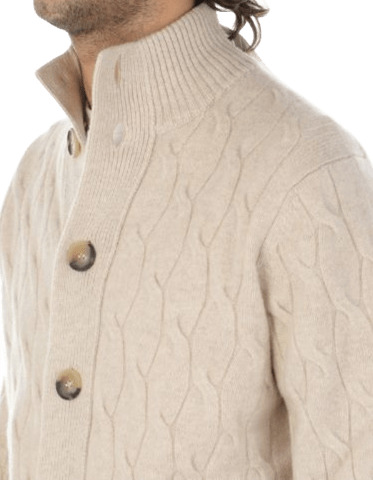 Cardigan a trecce ispirato al bomber, realizzato con una miscela di lana e cashmere. Offre uno strato morbido di peso medio, ideale per un calore quotidiano raffinato e outfit smart-casual.