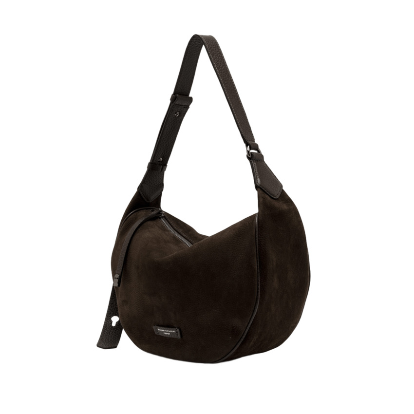 Borsa da donna in pelle nabuk, a spalla con il manico regolabile, colore espresso