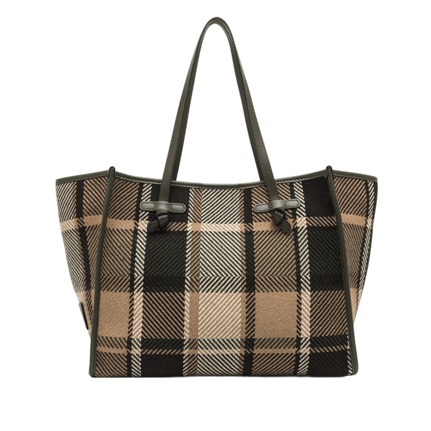 La shopping Marcella by Gianni Chiarini Firenze è realizzata in tessuto tartan. Dotata di manici in pelle e di una comoda chiusura tramite magnete, è ideale per la vita quotidiana. Il design è arricchito da profili in pelle che donano alla borsa un tocco di eleganza.
