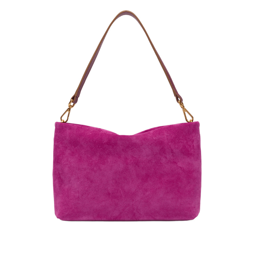 Brenda di Gianni Chiarini Firenze, è una pochette in pelle scamosciata impreziosita da un manigliotto removibile in pelle. All'interno presenta una pratica tasca piatta. Dotata di una tracolla in pelle regolabile e removibile, può essere indossata comodamente anche crossbody.