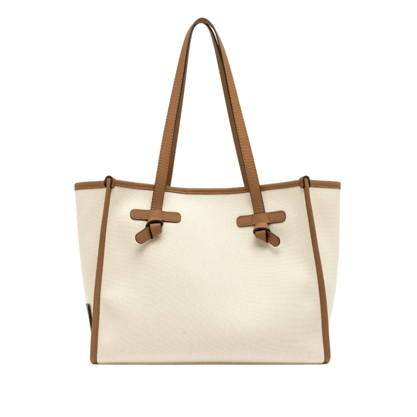 Questa versione della shopping Marcella presenta una silhouette minimale e elegante, realizzata in tessuto canvas. Dotata di manici in pelle e chiusura magnetica, è perfetta per l'uso quotidiano. I profili in pelle aggiungono un tocco di classe, mentre la fodera interna e la pochette coordinata ne aumentano la versatilità, rendendola ideale per completare anche i look più semplici.