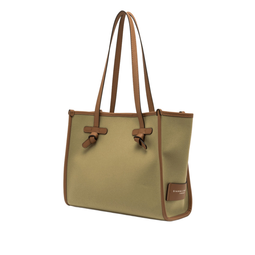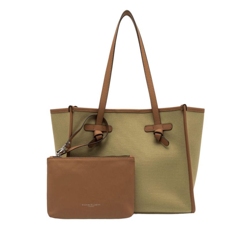 Questa versione della shopping Marcella presenta una silhouette minimale e elegante, realizzata in tessuto canvas. Dotata di manici in pelle e chiusura magnetica, è perfetta per l'uso quotidiano. I profili in pelle aggiungono un tocco di classe, mentre la fodera interna e la pochette coordinata ne aumentano la versatilità, rendendola ideale per completare anche i look più semplici.