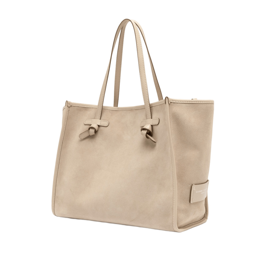 Questa versione della shopping Marcella, dal design essenziale e contemporaneo, è realizzata in morbida pelle scamosciata. Dotata di manici in pelle e di una comoda chiusura magnetica, è ideale per lutilizzo quotidiano. La fodera interna e la pochette coordinata in pelle, in tinta con le finiture, ne valorizzano la praticità e leleganza sobria.