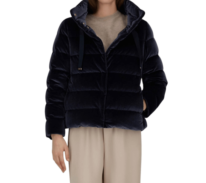 Giacca in velluto liscio rifinita con la maxi coulisse in gros grain che decora il collo e la zip a doppio cursore per regolare la vestibilità