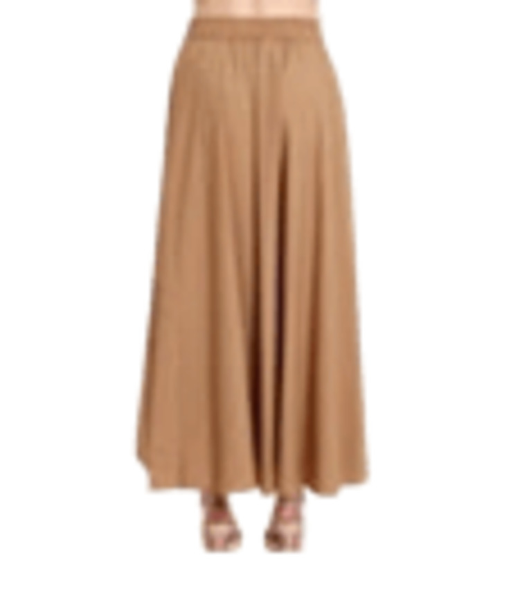 Gonna lunga realizzata in nylon stretch con vestibilità scivolata e morbida, inserto elastico in vita che segue delicatamente i movimenti e coulisse in gros grain con finalini in metallo logato. Tasche a filetto.