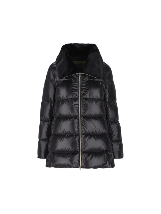 Piumino 3/4 in tessuto tecnico effetto lucido, realizzato in poliammide e imbottito per offrire calore e leggerezza. Il design trapuntato, la zip dorata e il collo ampio conferiscono al capo un!estetica moderna ed elegante. Un capospalla funzionale e raffinato, ideale per la stagione invernale.
